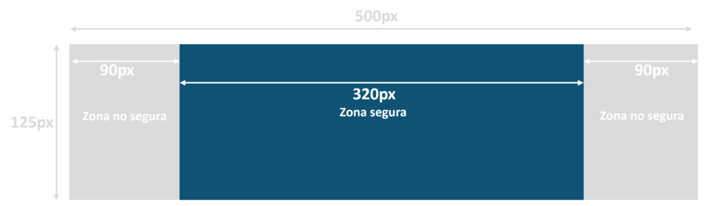 - Mobile: 500x125px respetando las zonas seguras de la siguiente imagen o 320x100px